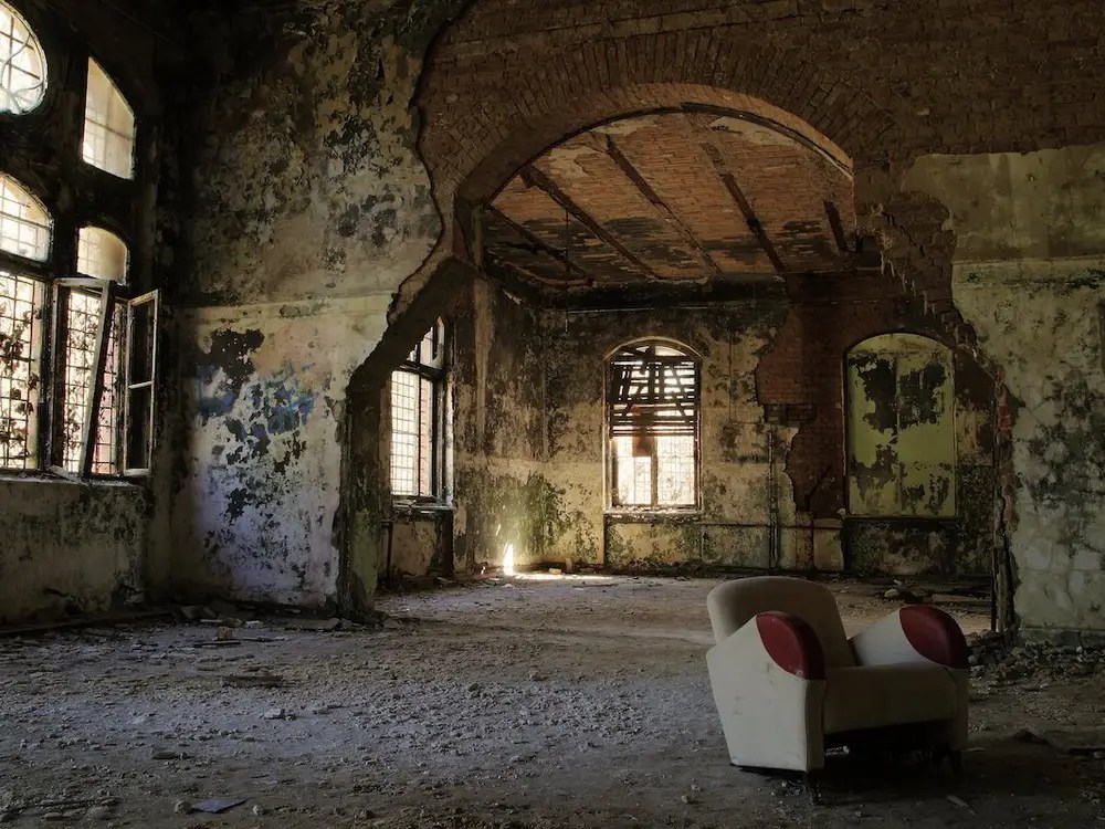 In the dream, I was in an old, abandoned building. It was dark and gloomy and I was walking through a main opening area, something like a hall way.